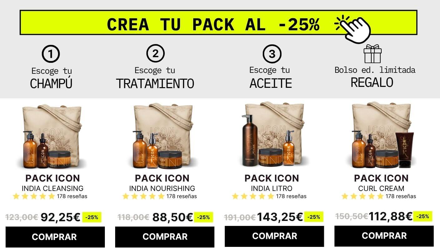 Con ICON India Pack te llevas a casa el kit perfecto para conseguir todos los beneficios de la línea a un precio espectacular, cubriendo tus necesidades específicas y asegurándote de que no te falte nada.